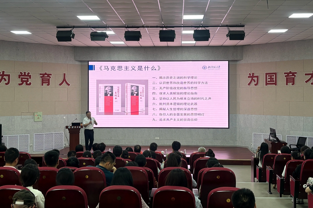仪式后,徐斌教授作了《马克思主义理论品格及现实力量》的专题报告。徐斌从马克思主义的精髓是实事求是、马克思主义的理论品格、马克思主义的现实力量三个方面对马克思主义的理论品格和当代价值进行了深刻阐释。整场报告精彩纷呈,为在场师生提供了一场学术盛宴。