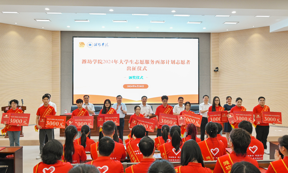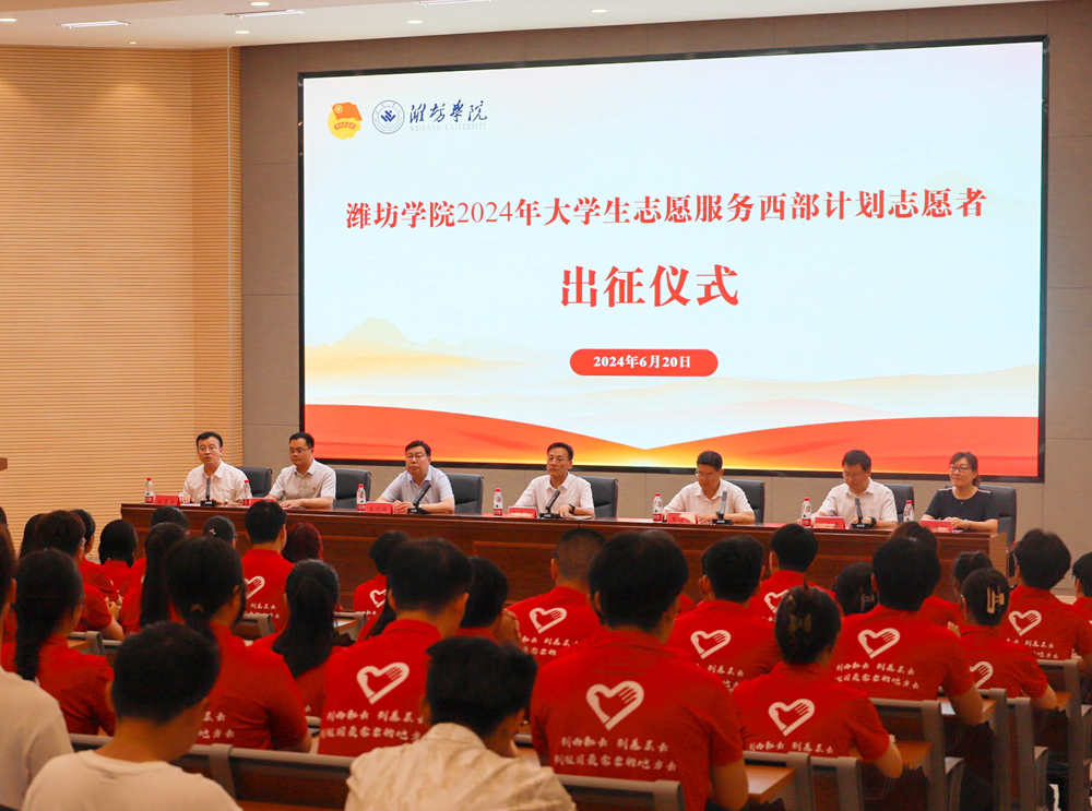 来逢波对入选2024年西部计划的122名志愿者表示祝贺。他指出,实施大学生志愿服务西部计划,是党中央、国务院做出的一项重要决策。他勉励志愿者要坚定理想信念,做追求理想的行动者;锤炼过硬本领,做担当尽职的奋斗者;深入扎根基层,做实践锻炼的先行者;奋勇建功立业,做志愿精神的践行者。要汇聚起强大的志愿精神,在西部计划中找准工作结合点、切入点、着力点,为加快建设国内一流应用型大学而不懈奋斗,在祖国大地唱响新时代潍院青年的奋进之歌。