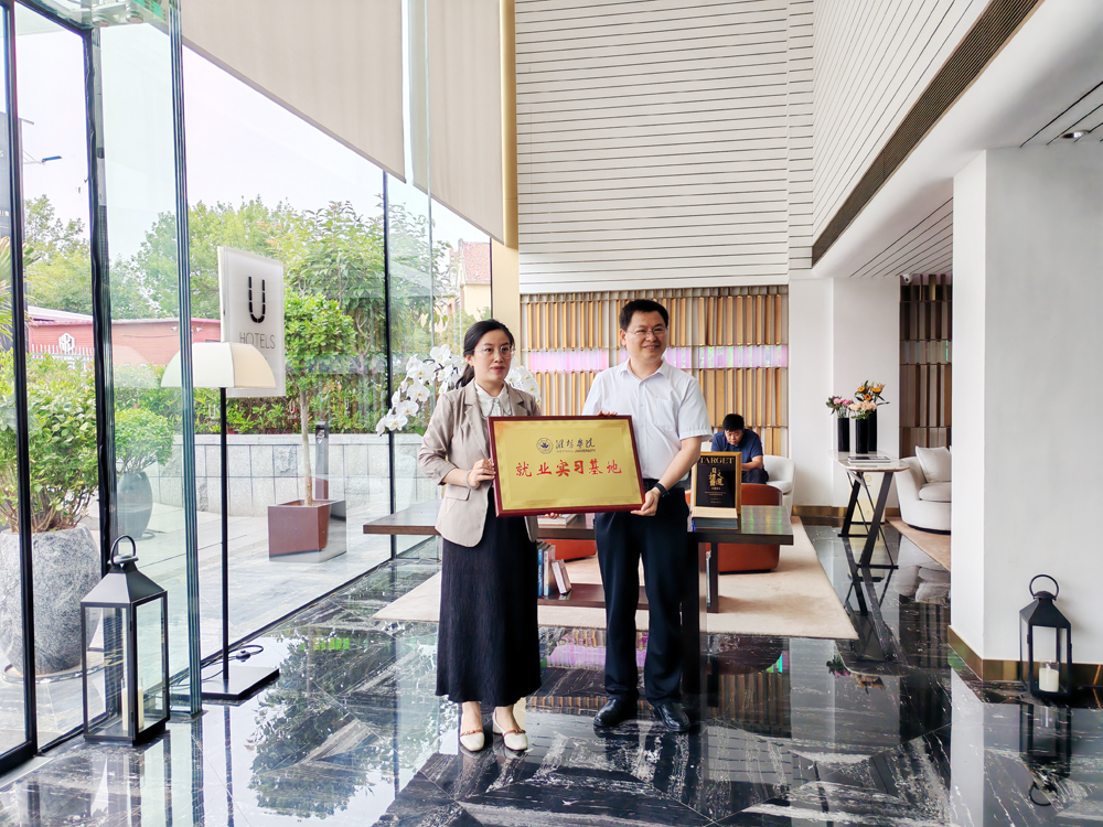 任立春一行先后到青岛海尔洲际酒店、青岛福楼安可傲途格酒店、青岛U酒店进行实地考察,在各企业负责人的陪同下,详细了解了企业的发展历程、运营模式、用人需求、实习生待遇、员工宿舍等情况。任立春简要介绍了学校人才培养、学科建设、校企合作等方面情况,重点对2024届毕业生进行了就业推介,希望以访企拓岗为契机,与用人单位建立交流合作的长效机制,在实习就业、人才培养、产教融合等方面进行全方位深度合作,促进供需双方精准对接,为毕业生创造更大成长空间。任立春和各企业负责人分别为“潍坊学院教学实践基地”“潍坊学院就业实习基地”揭牌。