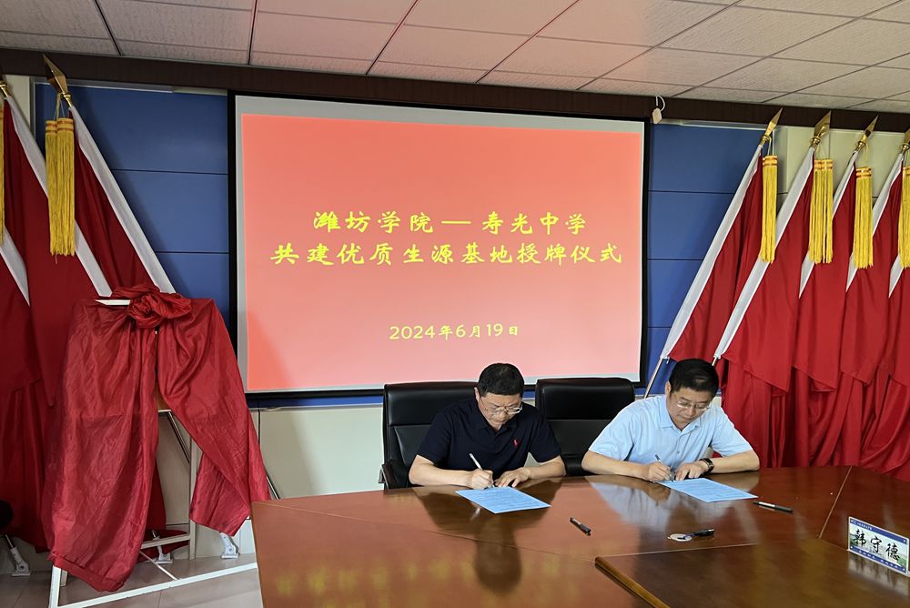 会后,机械与自动化学院与寿光中学签订了潍坊学院优质生源基地协议书,举行了优质生源基地挂牌仪式。