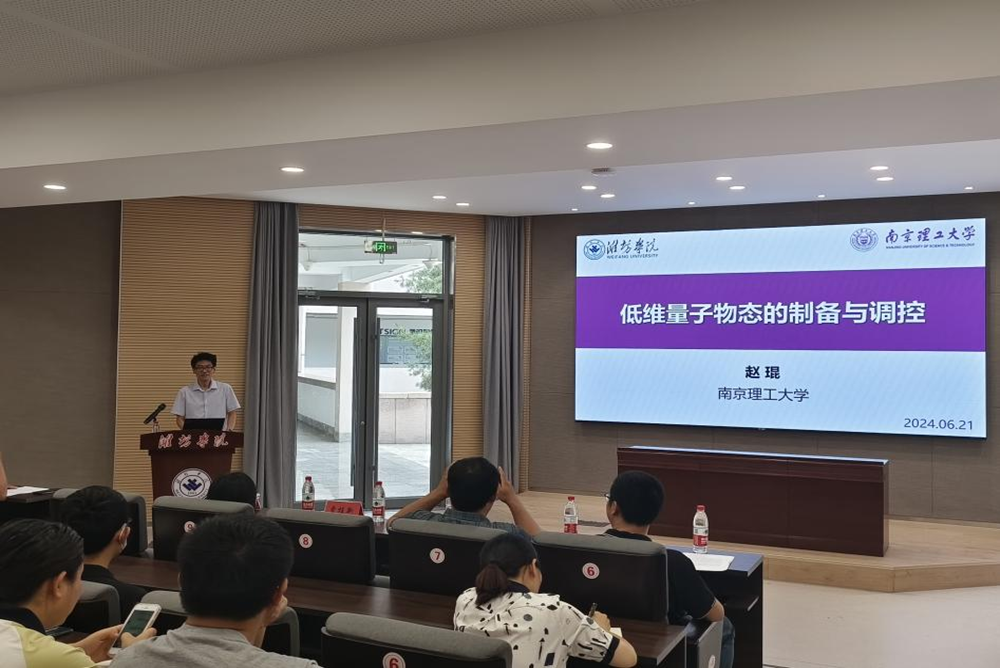 会上,赵琨教授以“低维量子物态的制备与调控”为题,围绕课题组在低维量子物态的制备与调控方面的研究探索,重点介绍单层NbSe2薄膜中无序诱导的超导增强效应、低维金属卤化物钙钛矿纳米晶的荧光增强效应和复杂过渡金属氧化物异质结的界面结构。曹桂新教授以“笼目结构反铁磁材料的拓扑自旋结构和拓扑霍尔效应研究”为题,围绕具有笼目结构的非共线反铁磁半金属材料的磁性和输运性能展开的研究,详细讲述了由于拓扑磁结构改变而产生的拓扑霍尔效应等诸多有趣的反常输运性能,并对其磁调控机理给出了解释。两位教授不仅分享了自己最新的研究成果和学术见解,还深入探讨了当前科研领域的热点问题和未来发展趋势,为与会者带来了一场丰盛的学术盛宴。