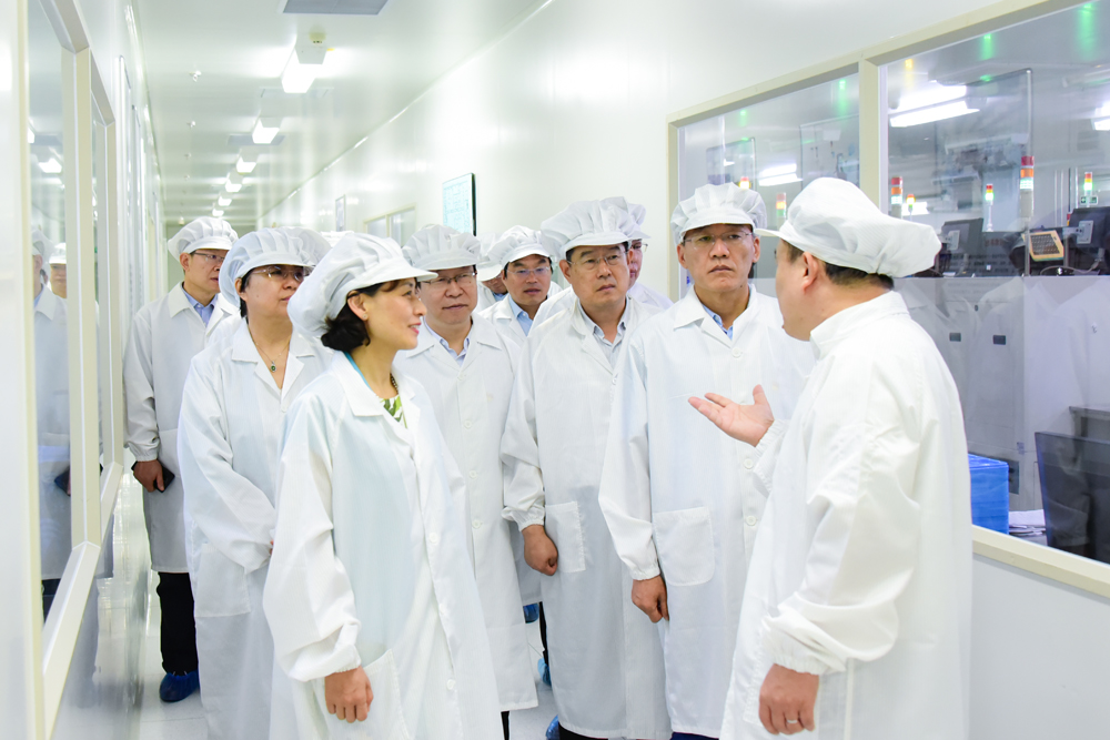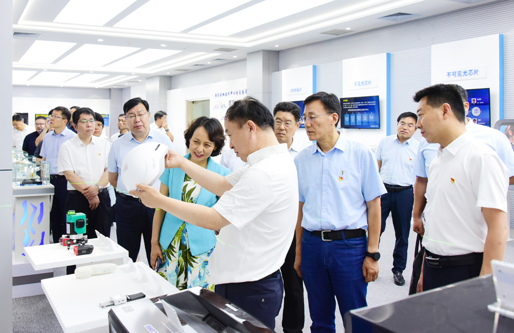 中心组成员集体观摩了浪潮华光公司展厅和管芯生产车间,现场观摩了新一代高清显示用小间距、户内、户外芯片和功率器件封装自动化生产线,听取有关情况介绍。