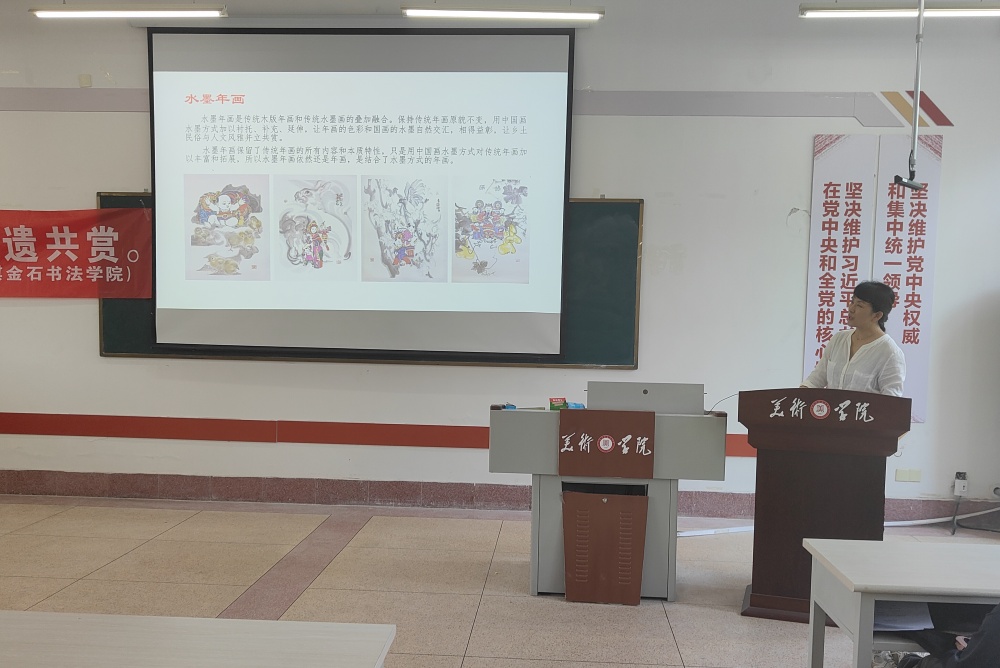 本网讯 为进一步增强大学生对传统文化的保护和传承意识,弘扬潍坊市优秀传统文化,6月28日,美术学院开展“非遗进校园-—木板年画”活动。学院党委副书记边洪燕、潍坊中恒杨家埠博物馆馆长赵立萍出席活动。