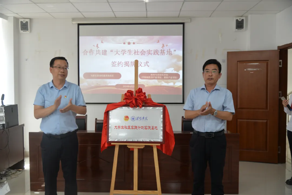 本网讯 6月27日,机械与自动化学院社会实践基地揭牌仪式在清池街道清池社区举行,学院党委副书记温效朔与清池街道党工委副书记、政协委员联络室主任王福顺为基地揭牌,双方签订大学生社会实践基地协议书。学院团委负责人和同心筑梦志愿队20名志愿者参加揭牌仪式。