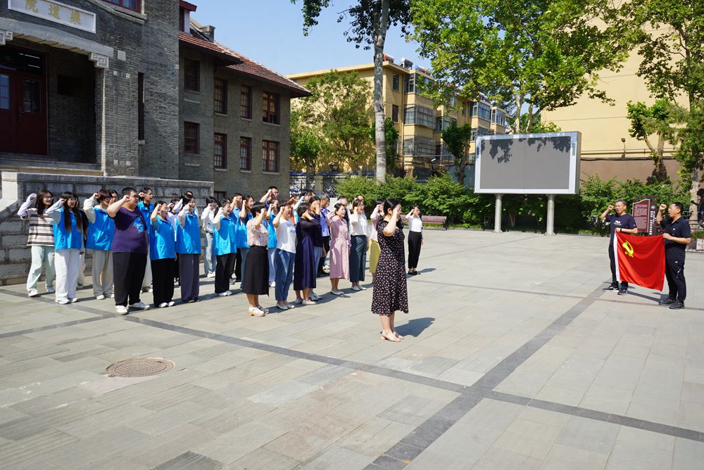 本网讯 为庆祝中国共产党成立103周年,回顾党的奋斗历程,讴歌党的光辉业绩,传承党的优良传统,6月28日上午,外国语学院全体党员走进爱国主义教育基地潍县西方侨民集中营博物馆开展“牢记初心使命 凝聚奋进力量”主题党日活动,重温入党誓词,淬炼党性,践行初心。