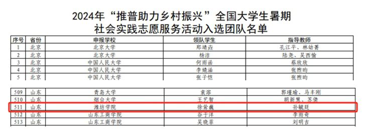 本网讯 近日,2024年“推普助力乡村振兴”全国大学生暑期社会实践志愿服务活动入选团队名单公布,我校机械与自动化学院(天瑞磁悬浮产业学院、潍柴产业学院)“炽光传情”志愿服务队成功入选。 同时,该服务队也成功入选团中央“七彩假期”暑期志愿服务项目。