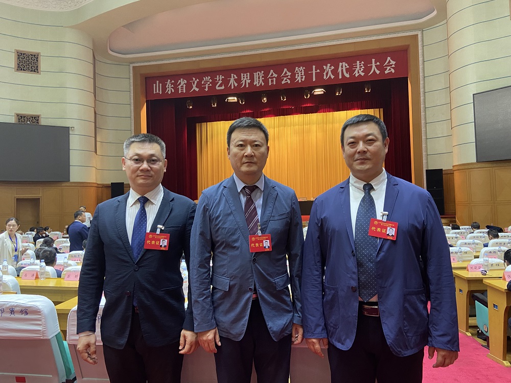 我校代表美术学院院长王勇,音乐与舞蹈学院院长王雷、综合办主任刘晋吉分别代表潍坊市美术家协会、潍坊市音乐家协会和潍坊市文艺志愿者协会参加大会。