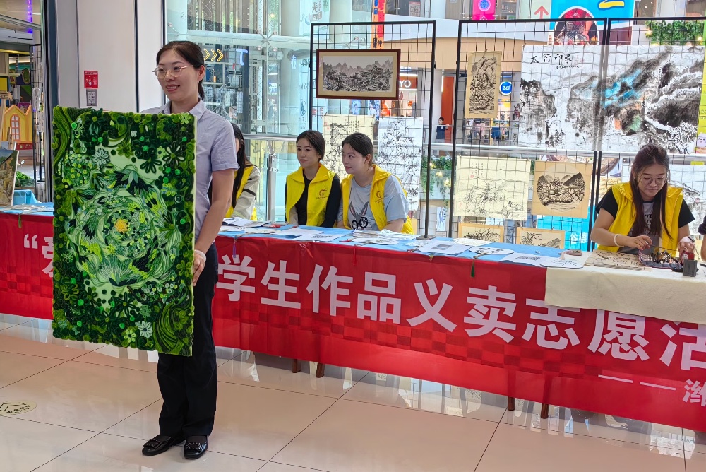 本网讯 7月6日至7日,美术学院在高新区谷德茂购物中心举办“爱艺同行”学生作品义卖志愿活动。学院党委副书记边洪燕、副院长陈隶静及相关负责同志参与活动。