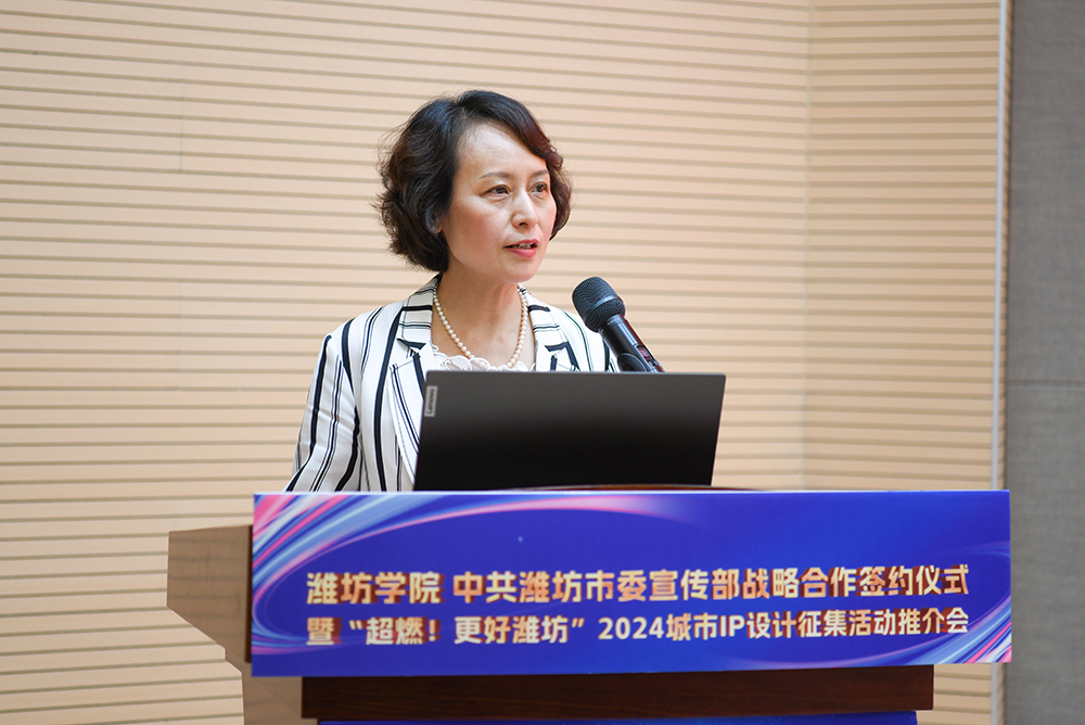 徐梅在致辞中指出,作为一所根植潍坊的省属综合性应用型大学,学校坚持立足潍坊、服务潍坊,全方位融入潍坊经济社会发展“主战场”,在推动校城融合发展、合作共赢方面取得显著成效。她表示,学校将以全面战略合作协议的签署为契机,与市委宣传部在新闻宣传、理论宣讲、文明创建、文化传承创新等方面深化合作,相互赋能,助力更好潍坊建设。
