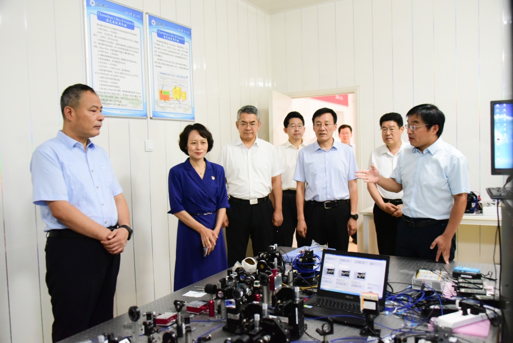 在物理与电子信息学院重点实验室,高峰详细了解三个重点实验室建设、研究特色、发展前景、科研进展等情况,他对学校加强科技创新团队平台建设、推进科技成果产出转化、深化校地融合等工作给予充分肯定。