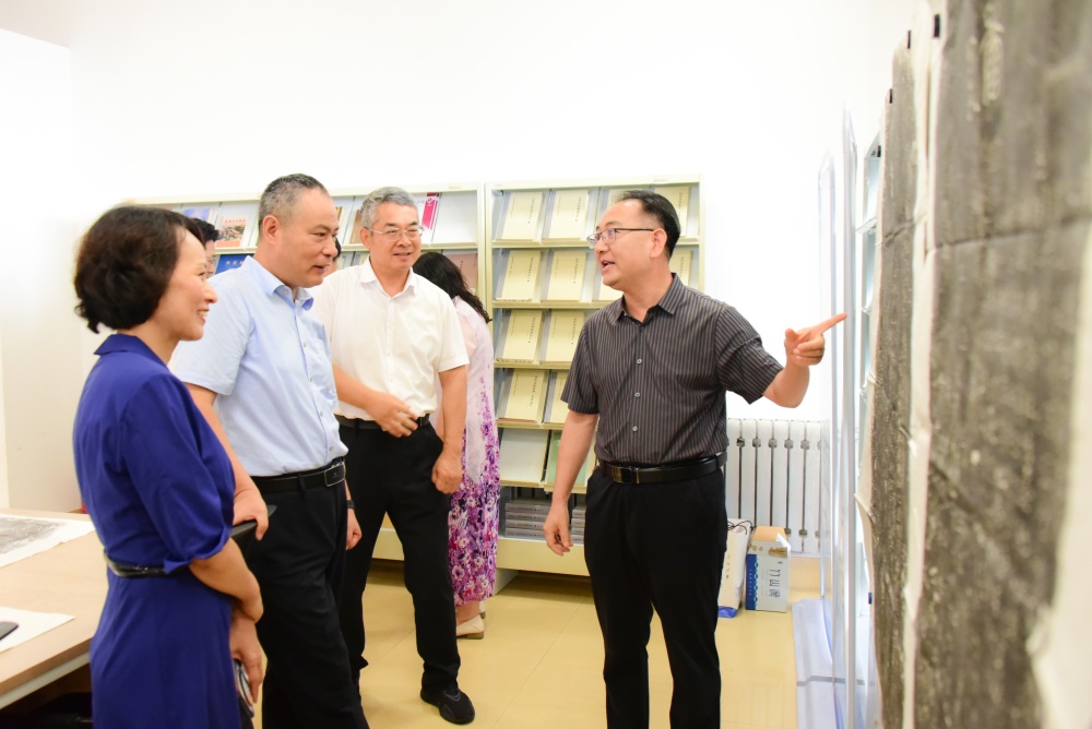 在岳镇海渎研究院,高峰阅览了研究院收藏的镇山碑刻拓本文献,了解了研究院的团队建设、科研方向及相关科研成果。他表示,潍坊学院成立岳镇海渎研究院,致力研究东镇沂山在中华文化中的重要地位,为提升潍坊文史研究水平,推动文化创造性转化、创新性发展,助力文化潍坊建设贡献了力量。