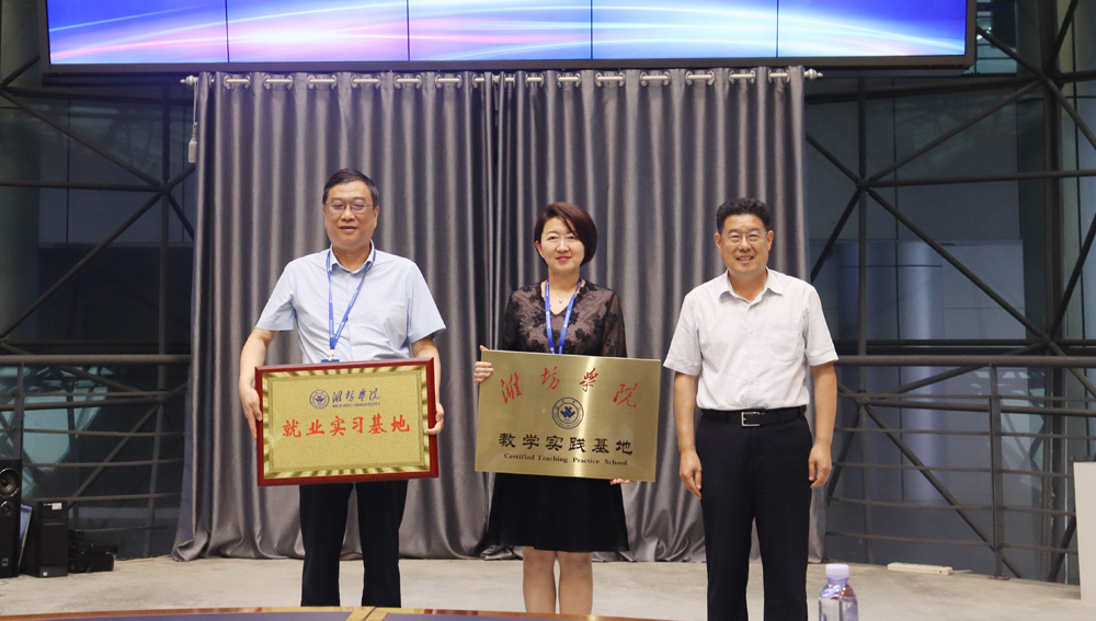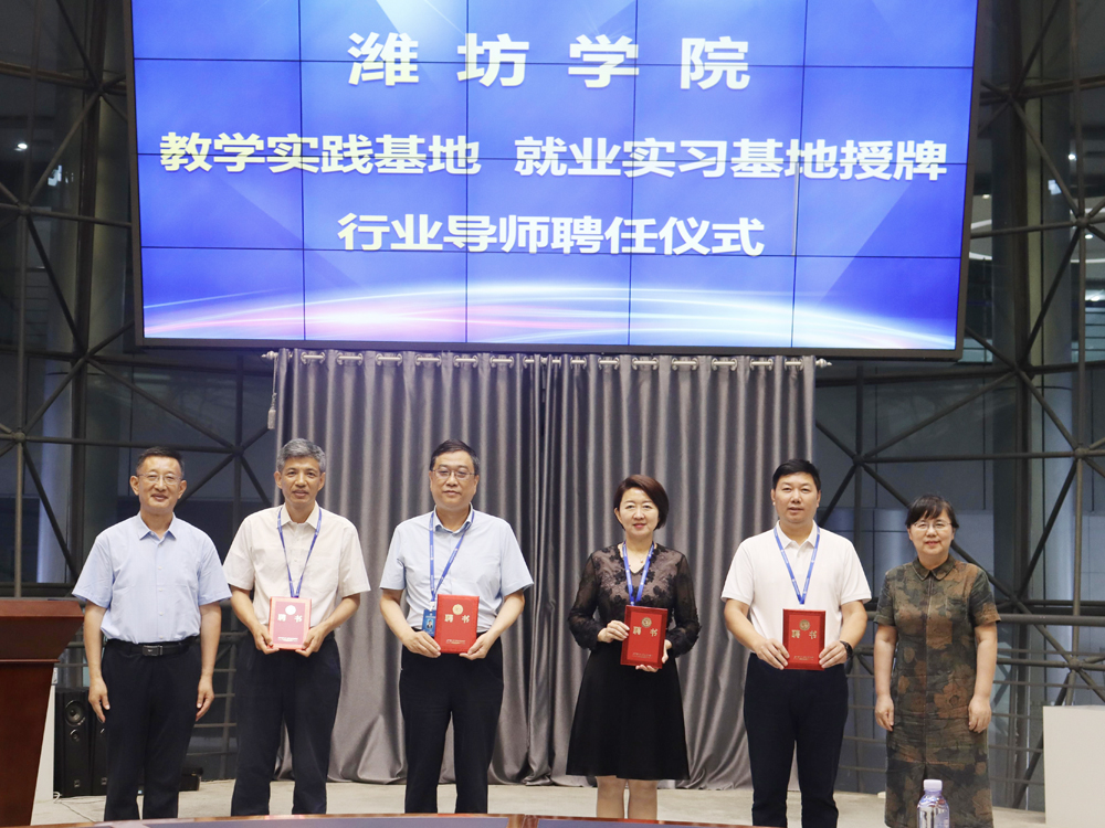 王守全为政金控股集团授“潍坊学院教学实践基地”“潍坊学院就业实习基地”牌匾。数学与统计学院负责同志为聘请的行业导师颁发聘书。