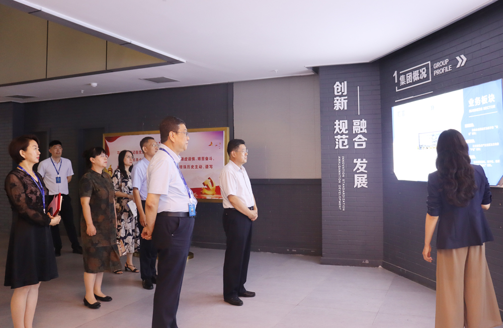 在政金控股集团,王守全一行还观看了集团的宣传片,实地参观了集团展厅,听取了集团的发展历程、重点业务和主要业绩等情况介绍。
