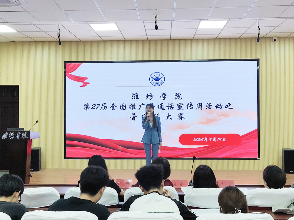 本次大赛分为诗朗诵和即兴演讲两个环节。在诗朗诵环节,10支队伍以推广普通话、讲述国歌等为主题,用他们流利的发音和精彩的演绎赢得了观众的阵阵掌声,展示了潍院学子的风采。在即兴演讲环节,10位参赛选手通过抽签,在有限的时间内,用标准的普通话展示了丰富的内容——大到中华优秀传统文化,小到日常时间管理,分享了他们独到的见解和情感体验。