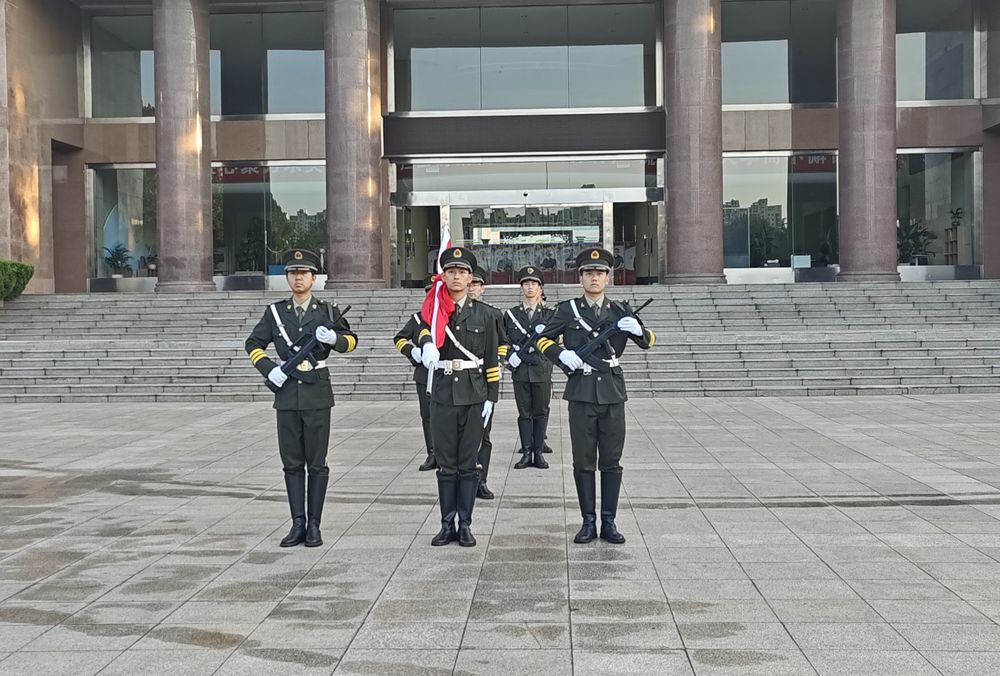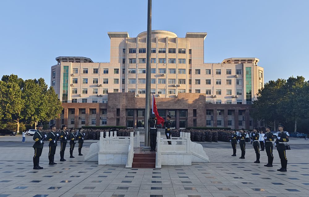 本网讯 9月23日,物理与电子信息学院在行政楼前举办“礼敬国旗,同唱国歌”升国旗主题教育活动。