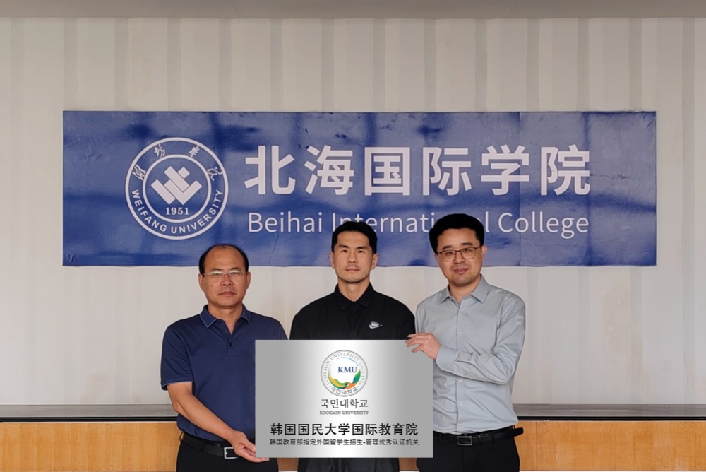本网讯 9月25日,韩国国民大学国际教育院主任崔峰一行到校访问,北海国际学院党委书记任怀坤、院长王波参加座谈会。