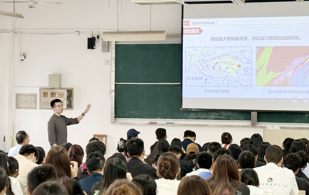 课前,刘炳强运用学习通平台发布《工程地质与地基基础》课程学习任务,进行了授课预习与热身;课堂上,以“地震的成因及抗震设防”为主题,通过详细讲解地震的成因、地震波的类型、以及抗震措施,引导学生认识到工程地质学在抗震设防中的重要性和集体应对灾害的重要意义。此外,刘炳强让学生们运用弹簧和绳子来演示地震波的形成和运动方式,以画图的形式展示出地震波对建筑物的影响,既活跃了课堂氛围,又带动了学生参与课堂互动的积极性。