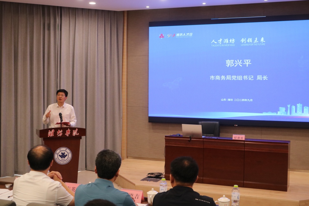 本网讯 9月26日,由潍坊市商务局主办,学校经济管理学院、潍坊企业家学院、国丰财经研究院、潍坊市跨境电子商务协会承办的2024年跨境电商赋能纺织服装产业链产才对接交流会在我校举行。潍坊市商务局党委书记、局长郭兴平,学校党委委员、副校长李英德出席活动。