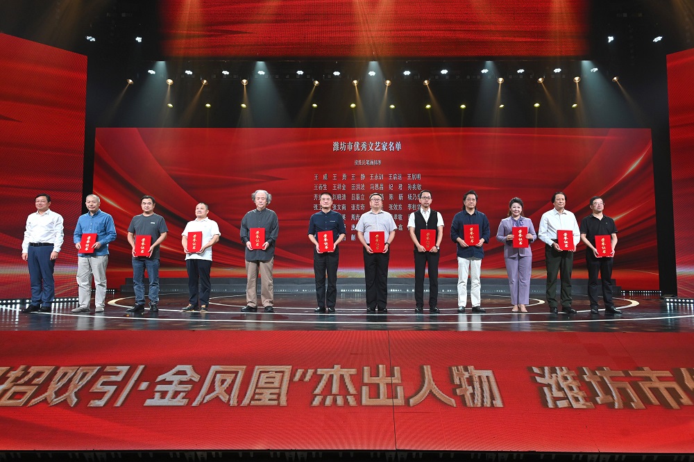 本网讯 近日,“我的家在潍坊”潍坊在外文艺名家、“双招双引·金凤凰”杰出人物、潍坊市优秀文艺家授牌颁奖活动在市广播电视台举行。我校美术学院院长王勇、美术学院原院长周赤舟和音乐与舞蹈学院教师黄永健作为潍坊市优秀文艺家代表上台领奖。