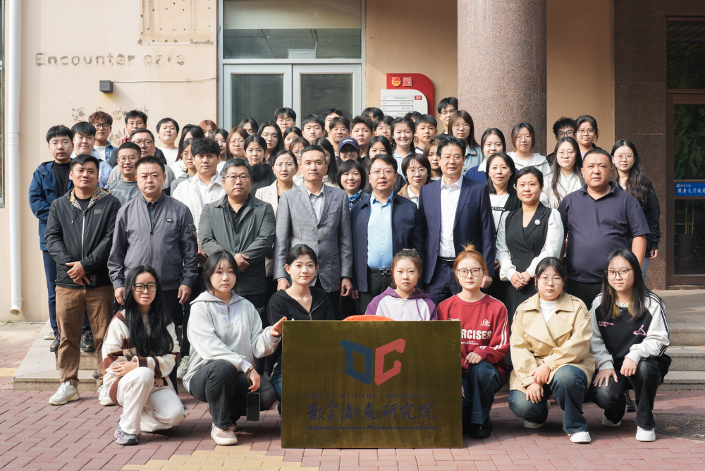 本网讯 近日,潍坊学院数字创意研究院揭牌仪式在敏行楼举行。学校科研处处长李庆军,传媒学院党委书记张增森,党委副书记、院长韩殿元及相关学科专家以及行业代表参加活动。