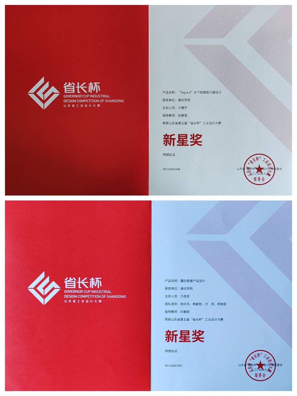 本网讯 近日,山东省“省长杯”工业设计大赛组委会办公室公布了山东省第五届“省长杯”工业设计大赛获奖名单,我校机械与自动化学院两件作品荣获新星奖。