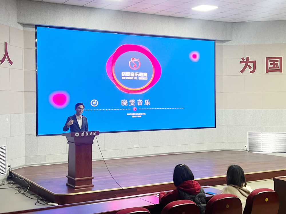 招聘会上,李泽传向同学们详细介绍了晓雯音乐教育的企业背景、企业文化、职位发展前景等相关信息,着重讲解了公司的招聘需求、福利待遇、培训机制和职业发展前景等相关情况。学生们积极互动,了解行业动态,寻找适合自己的职业发展路径,李泽传对学生提出的问题进行了一对一讲解。随后,晓雯音乐教育对心仪该企业的同学进行了现场面试。