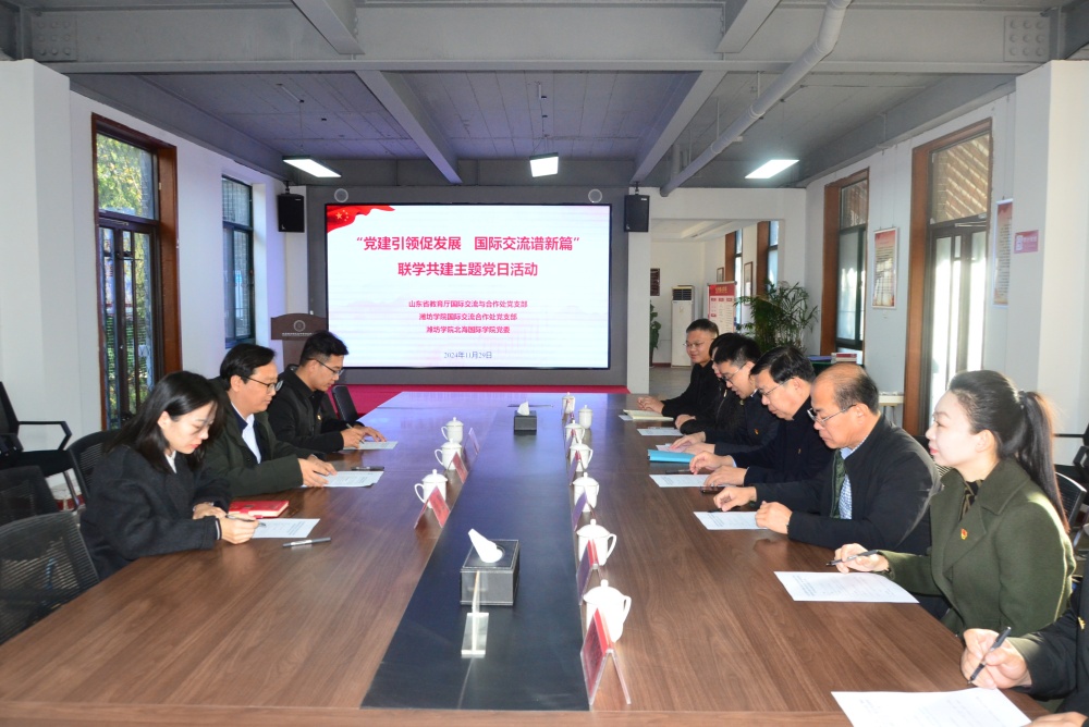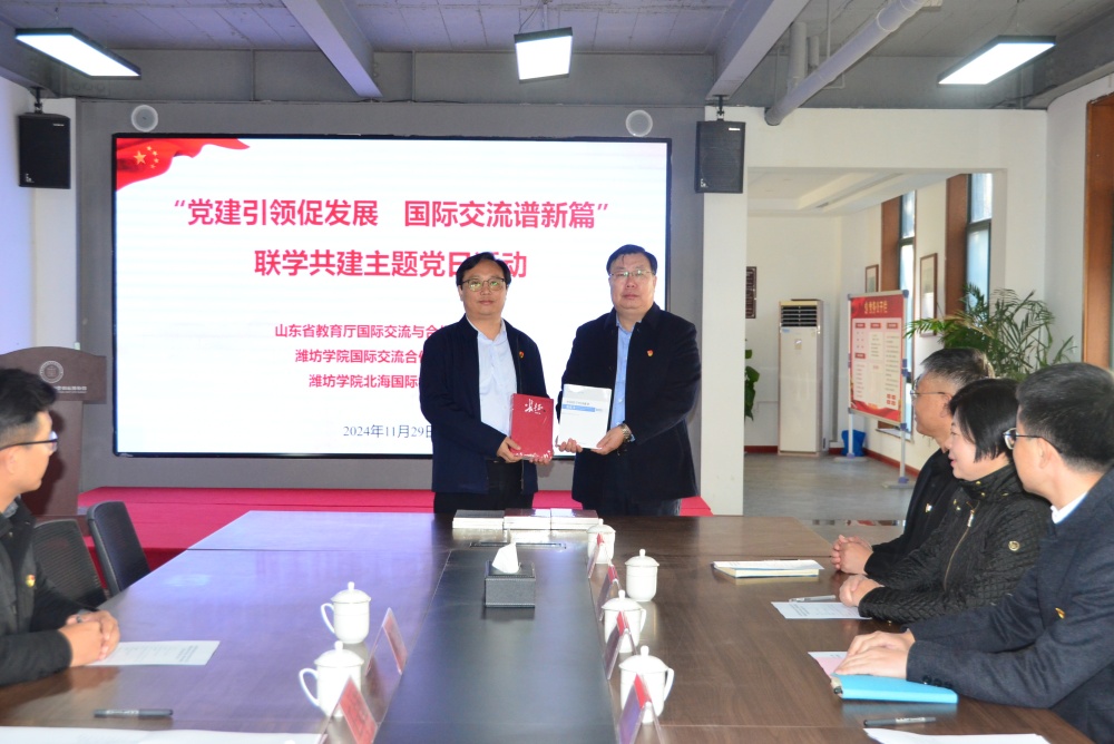 活动中,省教育厅国际交流与合作处处长王夫海领学了党的二十届三中全会精神,全体党员同志重温了入党誓词。王夫海与学校党委委员、副校长王成端代表双方互赠学习书籍。省教育厅国际交流与合作处党支部与学校国际交流合作处党支部、北海国际学院党委签订联学共建协议。大家集体参观了潍县西方侨民集中营旧址博物馆。