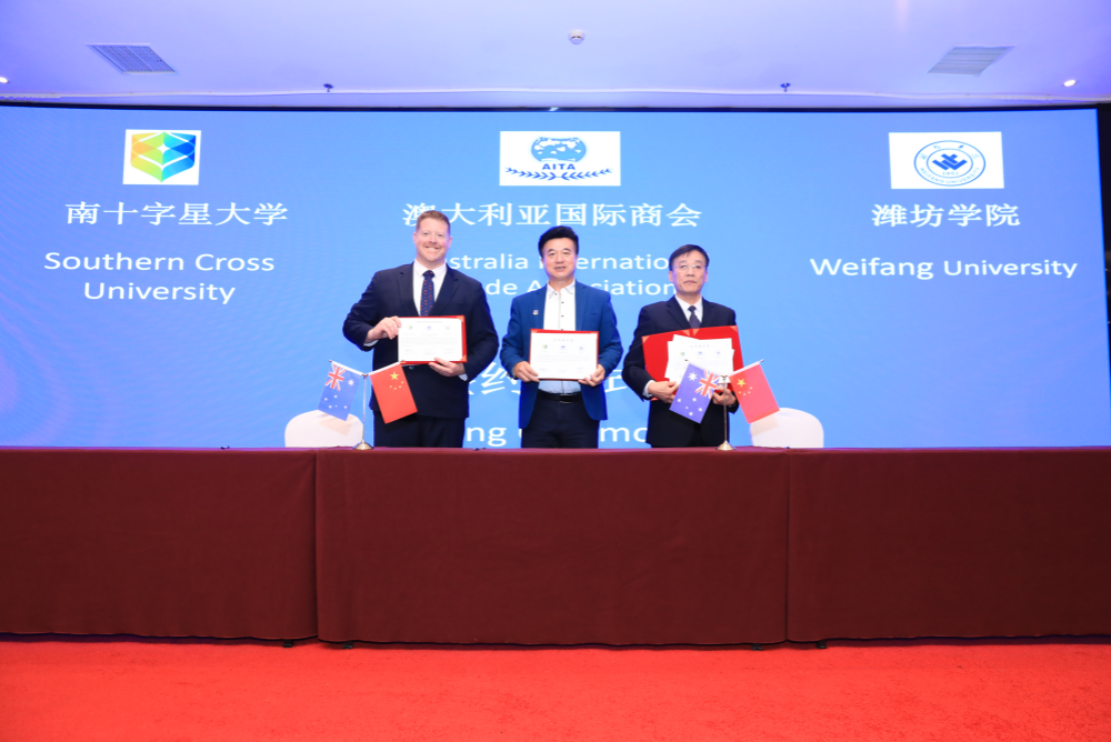 签约仪式上,来逢波代表学校与澳大利亚南十字星大学、澳大利亚国际商会正式签署合作协议。三方将在学生联合培养、教师互访、联合科研、课程共建共享等多个方面展开深度合作,共同开启中澳教育合作新篇章。