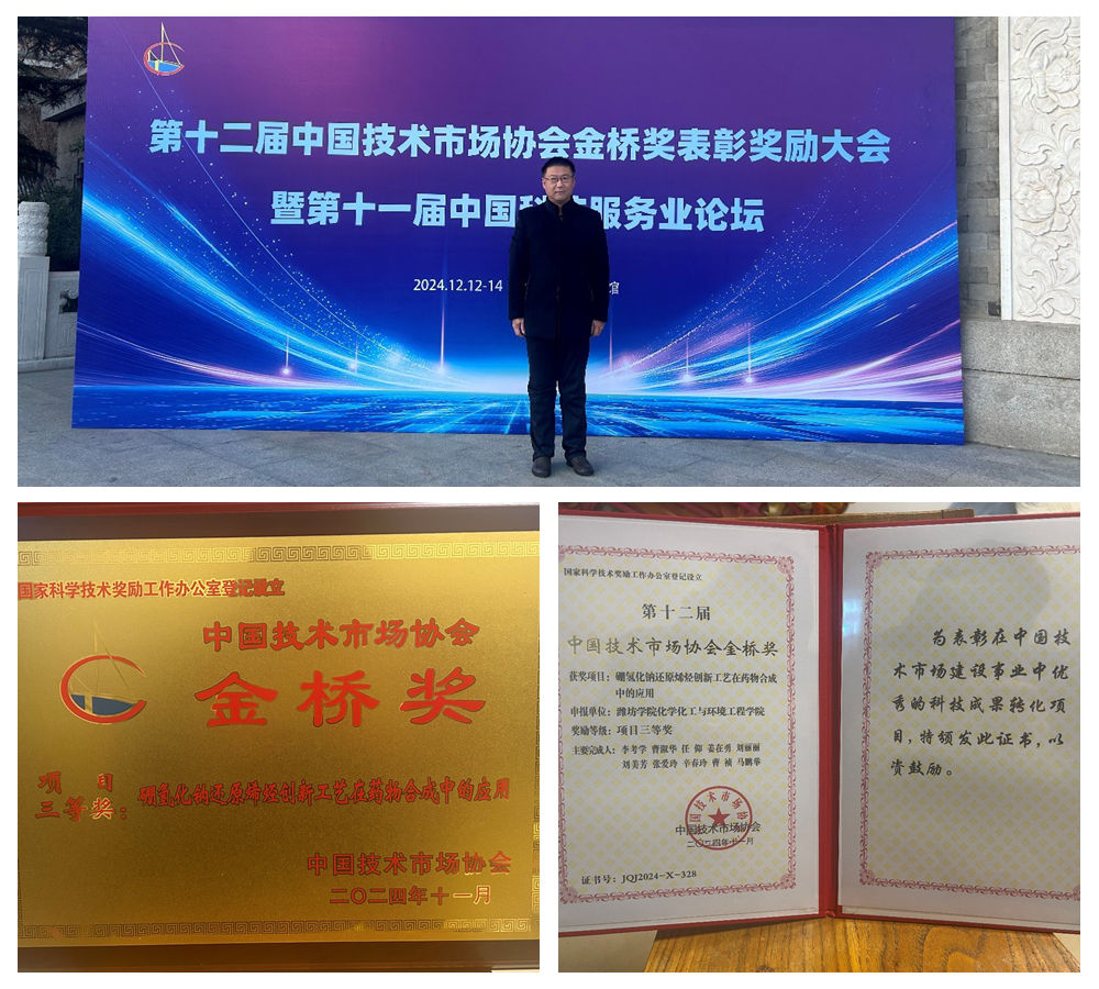 本网讯 近日,第十二届中国技术市场协会金桥奖评选结果揭晓,学校化学化工与环境工程学院申报的“硼氢化钠还原烯烃创新工艺在药物合成中的应用”项目荣获三等奖。
