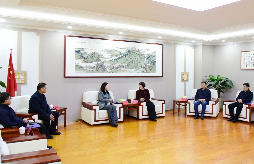 徐梅代表学校对高志秀一行表示欢迎,并简要介绍了学校的办学历史、学校概况、人才培养、专业建设、未来发展目标和总体规划、主要工作举措及取得的成绩。她希望,双方建立长期稳定的交流合作机制,努力产出一批高质量合作成果,携手并进,为山东省教育强省建设贡献力量。