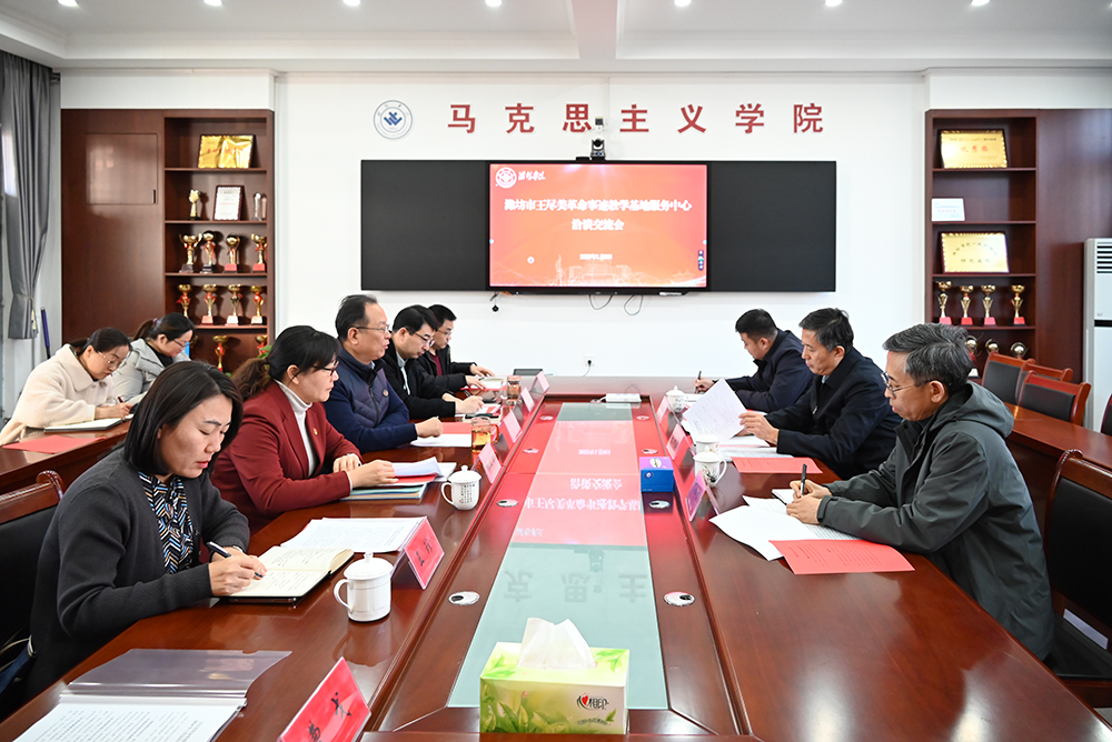 本网讯 1月8日,潍坊市王尽美革命事迹教学基地服务中心来校洽谈交流。学校党委委员、宣传部部长张晓静,基地服务中心副主任毛玉东、丁坤元出席座谈会。