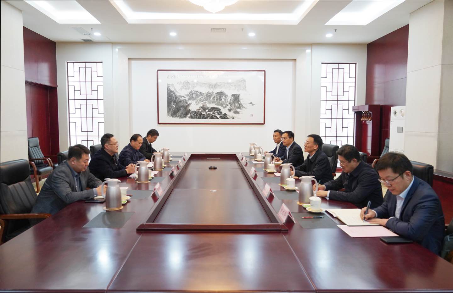 本网讯 10月23日,学校党委书记来逢波带队赴省委党校(山东行政学院)交流座谈。省委党校(山东行政学院)分管日常工作的副校(院)长白皓会见来逢波一行。省委党校(山东行政学院)副校(院)长、一级巡视员高尚瑞,学校党委副书记王守全,党委委员、组织部部长赵加强出席座谈会。