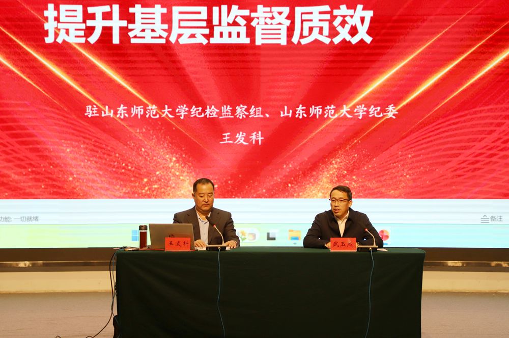 会上,省纪委监委驻山东师范大学纪检监察组副组长、山东师范大学纪委副书记王发科围绕贯彻落实全面从严治党主体责任、做好职能监督、专责监督的方法路径与案例实践等方面作专题辅导报告。报告前,全体与会人员观看了警示教育片。