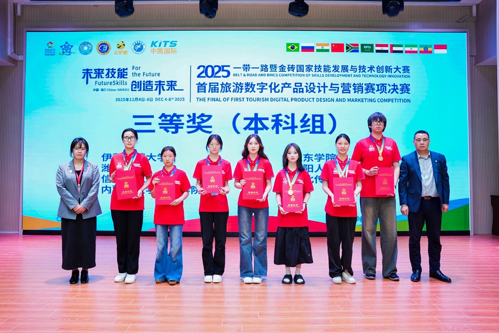 本网讯 近日,2025一带一路暨金砖国家技能发展与技术创新大赛系列赛事相继落幕。学校文史学院代表队凭借出色表现,在“旅游数字化产品设计与营销”和“酒店数字化运营与营销”两个赛项中均荣获国家三等奖,展现了学校在文旅领域数字化人才培养的扎实成果。