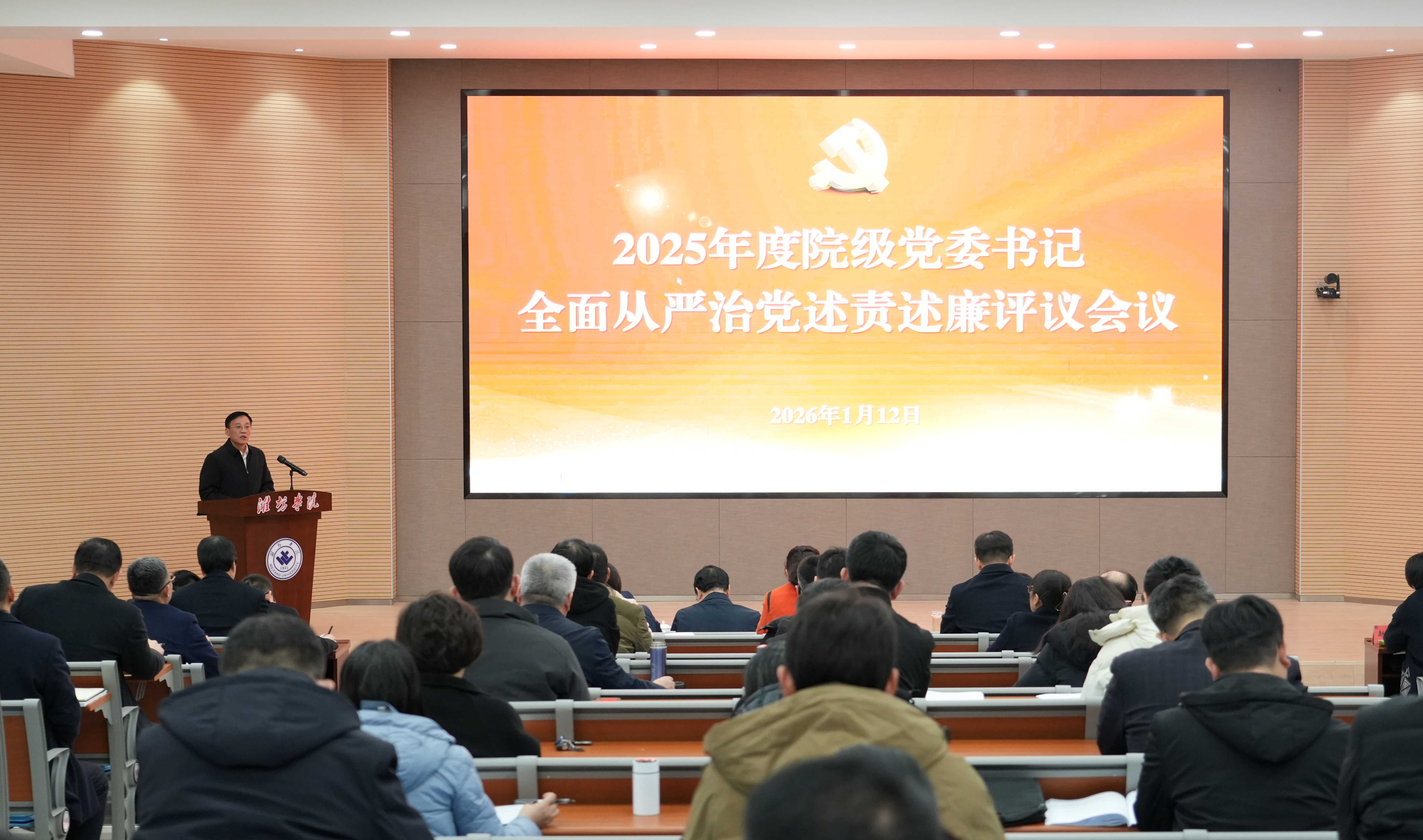 本网讯 1月12日,学校召开2025年度院级党委书记全面从严治党述责述廉和抓基层党建工作述职评议会议。党委书记来逢波主持会议并讲话,学校党委班子全体成员出席会议。