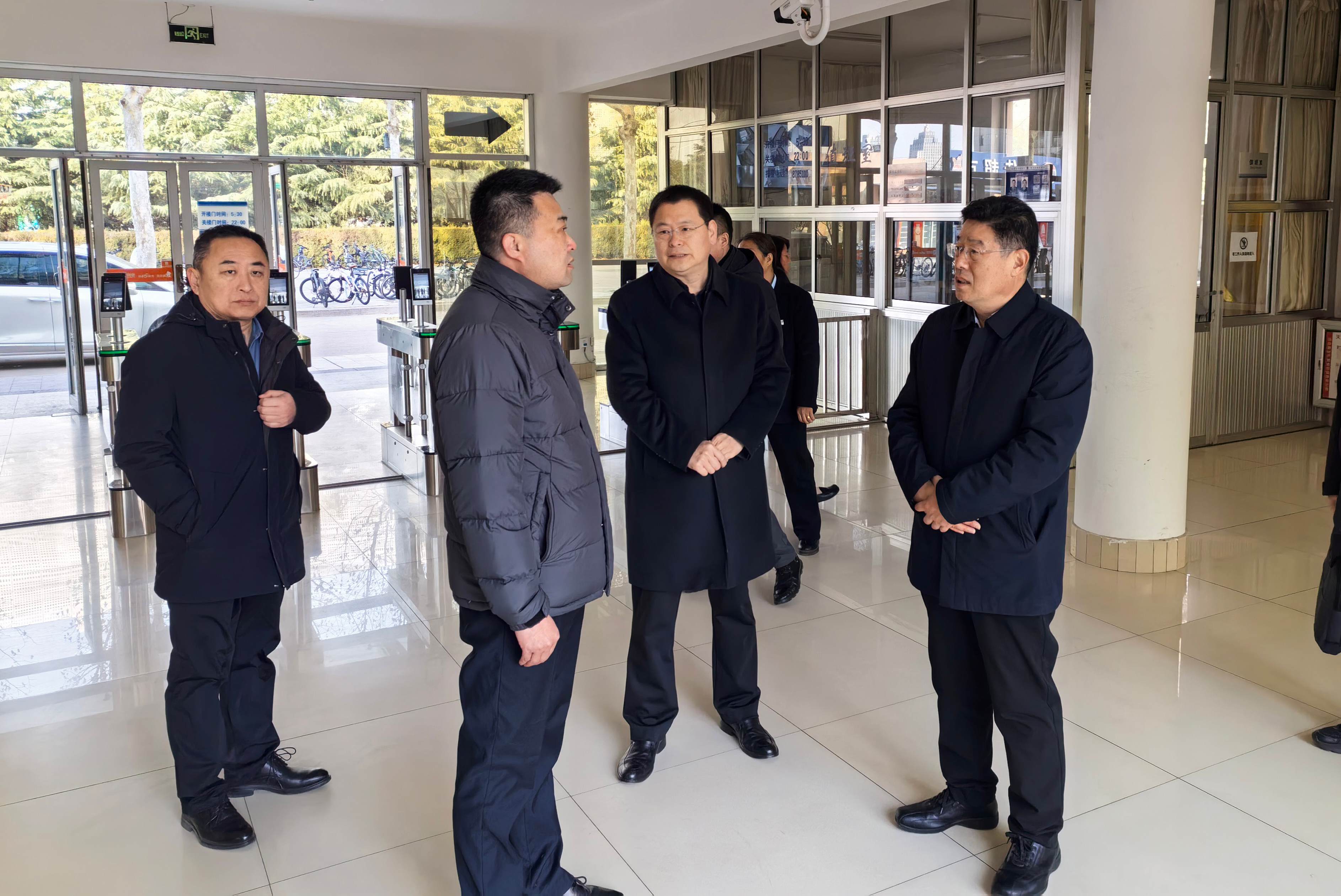 本网讯 为保障寒假期间校园安全稳定,确保留校师生平安过节,1月30日,学校党委书记来逢波,党委副书记、校长王霞带队开展校园安全大检查。党委副书记王守全,党委委员、副校长任立春参加活动。