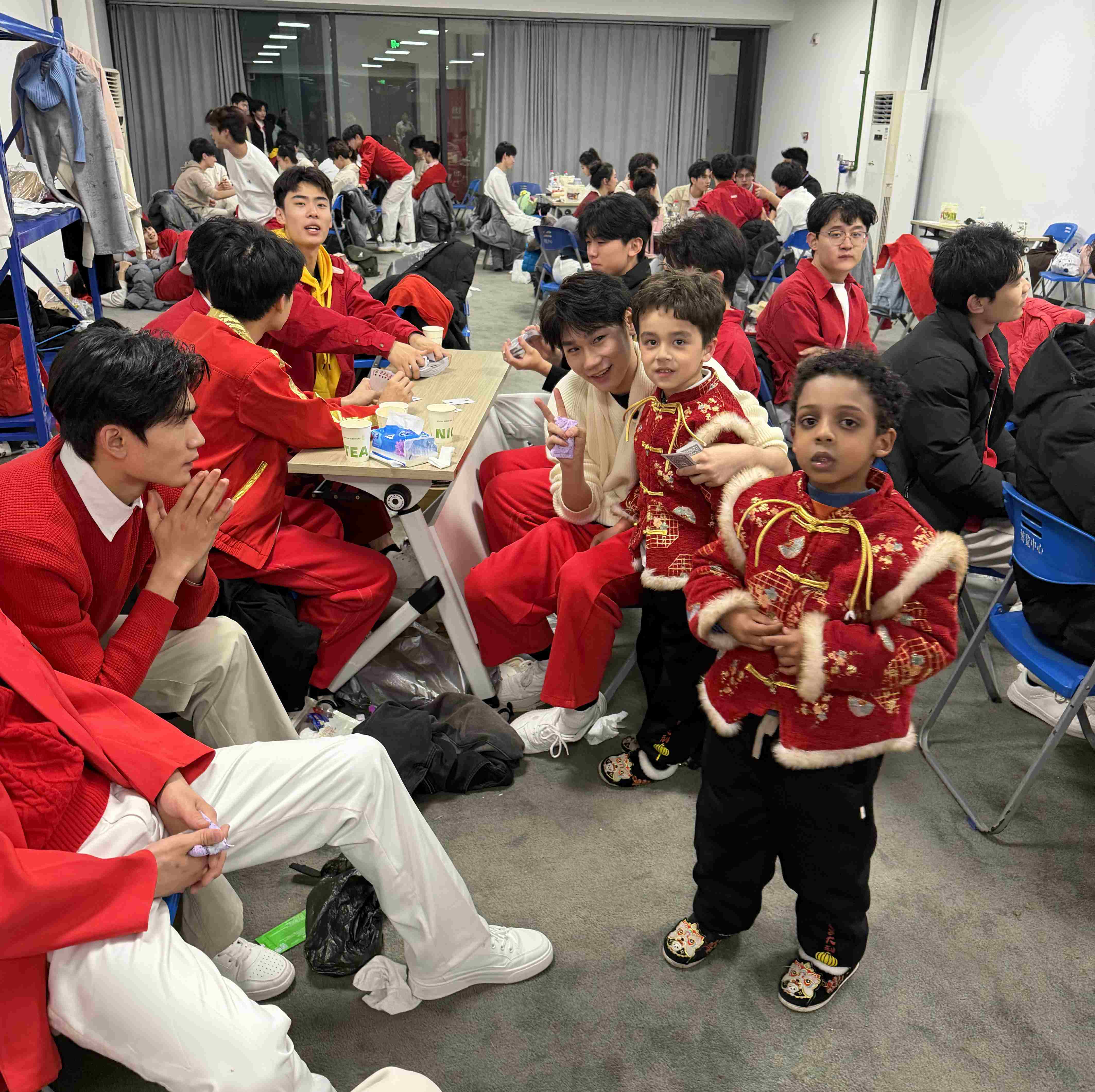 此次演出任务时间紧、标准高。2025年12月24日,由舞蹈系教师宋静、任昌菲带队,2023级至2025级舞蹈专业的31名学生奔赴义乌,投入央视春晚的紧张排练。在封闭式训练中,师生们克服了冬日严寒、排练强度大等困难,每日训练时长超过12小时。面对导演组的严格要求和频繁调整,师生团队精益求精,对每个动作细节、队形变换反复打磨,往往一个点位要演练数十遍甚至上百遍。排练期间,学生们脚磨出血泡仍坚持训练,利用午休间隙在地板上短暂歇息,主动在休息时间加练、互帮互学,展现出过硬的专业素养和顽强的意志品质。