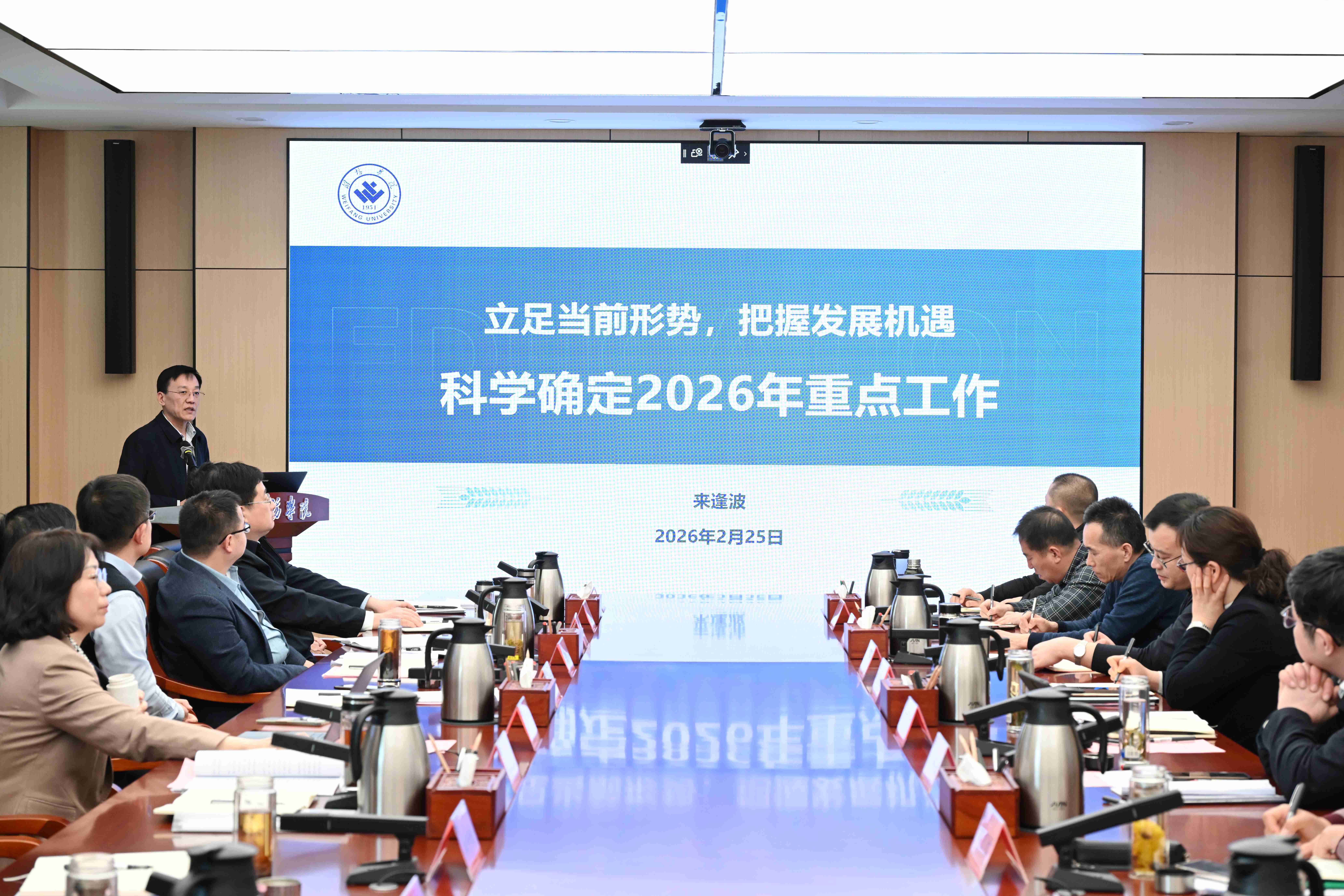 本网讯 春潮涌动启新程,谋篇布局再出发。2月25日,学校召开2026年重点工作研讨会,深入研判教育强国强省建设背景下的发展形势,紧扣国家及山东省“十五五”规划部署,系统谋划学校2026年重点工作。学校党委书记来逢波主持会议并作总结讲话,党委副书记、校长王霞分析工作形势并部署相关任务,党委班子成员出席会议。