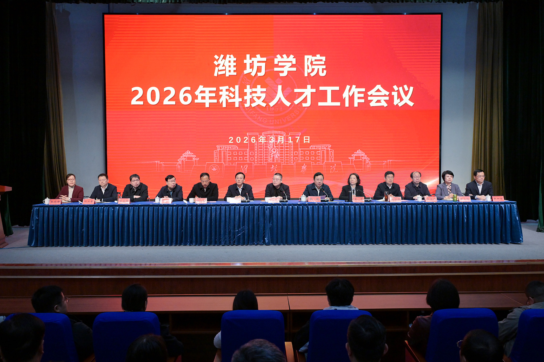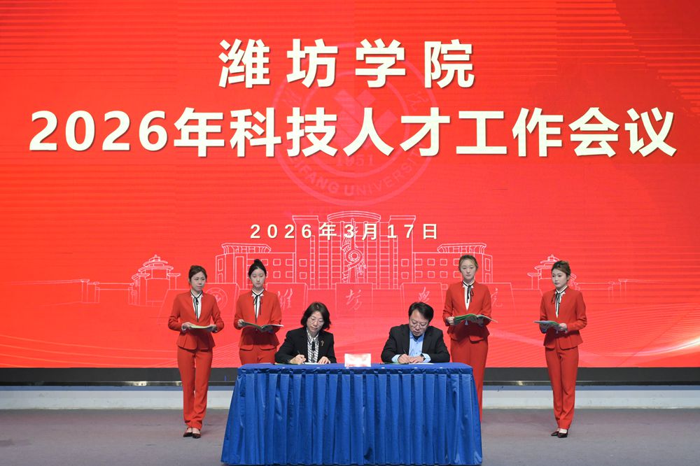 本网讯 春归万物生,策马踏新程。3月17日,学校召开2026年科技人才工作会议。山东省教育厅二级巡视员管恩文,潍坊市委常委、副市长狄波出席会议并致辞。党委书记来逢波作总结讲话,党委副书记、校长王霞作科技人才工作报告。会议由来逢波,党委委员、副校长苗金春分阶段主持。省教育厅科技处二级调研员矫立峰、学校党委领导班子成员出席会议。