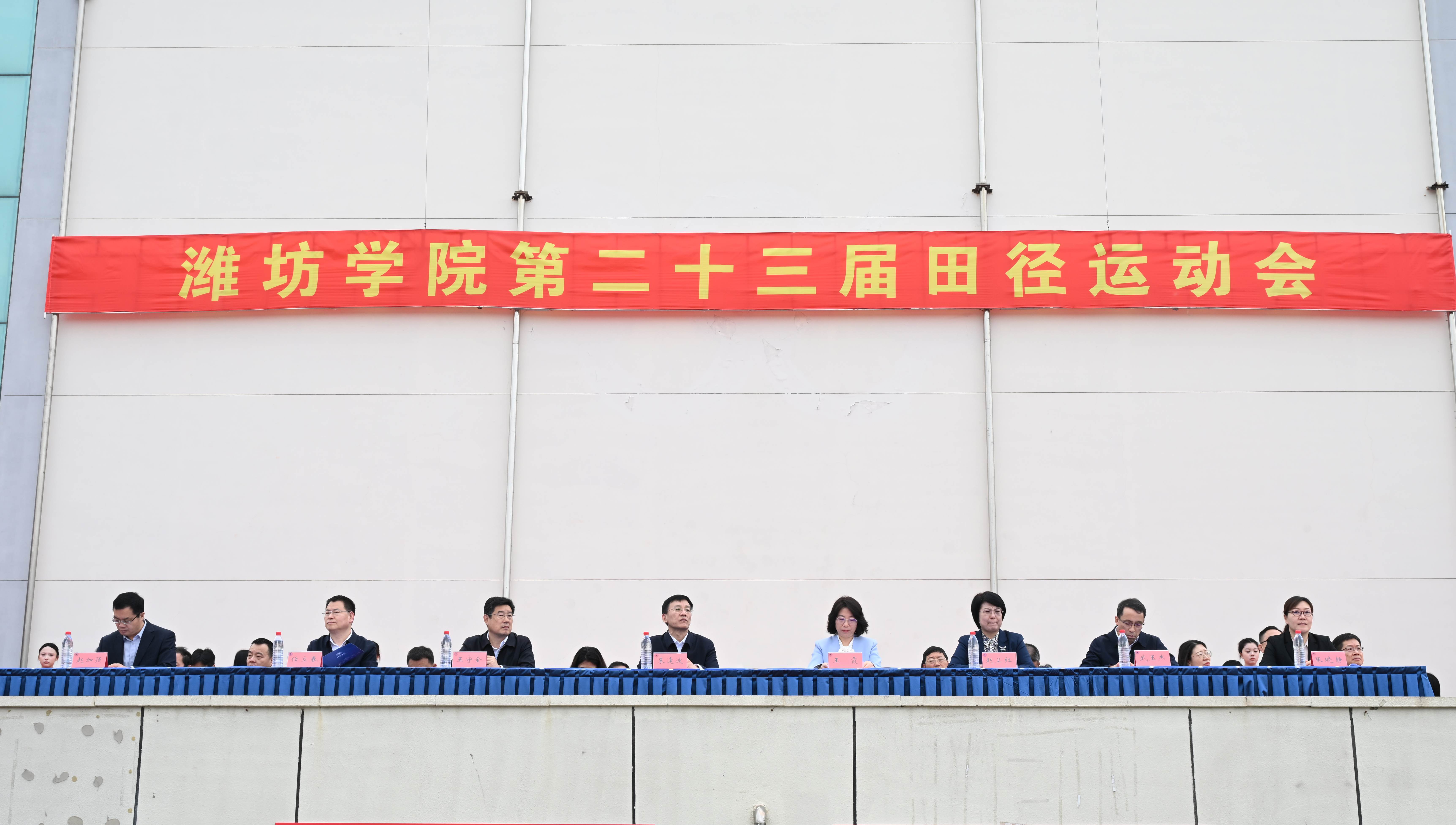 来逢波宣布潍坊学院第二十三届田径运动会开幕,现场掌声雷动,气氛推向高潮。