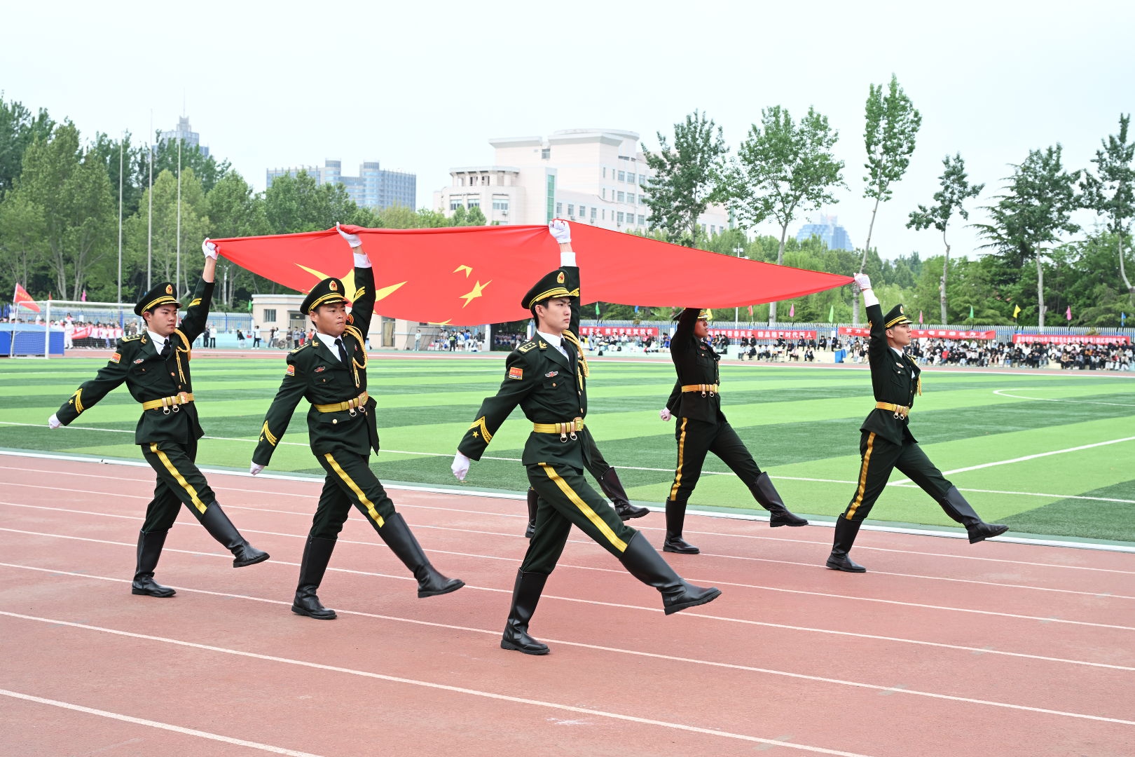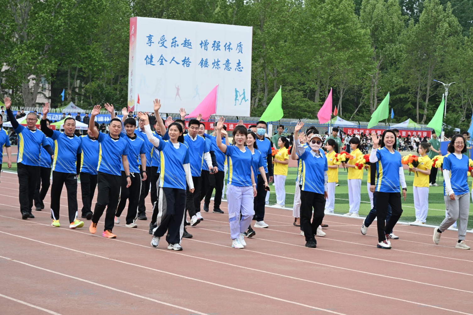 王霞在致辞中肯定了体育在学生成长及学校“三链四融”育人体系中的重要作用,回顾了近年来学校在学生体质健康、体育竞技、体育基础设施建设等方面取得的成绩,并阐述了体育蕴含的“不放弃”的韧劲、“懂协作”的智慧、“守规则”的底线等深刻内涵。她希望同学们以运动会为契机,释放激情、收获成长与友谊,将体育精神融入青春每一步,努力成长为德智体美劳全面发展的时代新人。