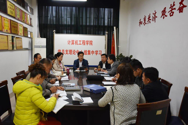 本网讯 10月25日下午,计算机工程学院党总支理论学习中心组(扩大)在7222会议室召开读书会,集中学习党的十九大决议。党总支书记王忠山主持会议并领学有关文件,全体党总支委员、党支部委员、党小组长参加学习活动。