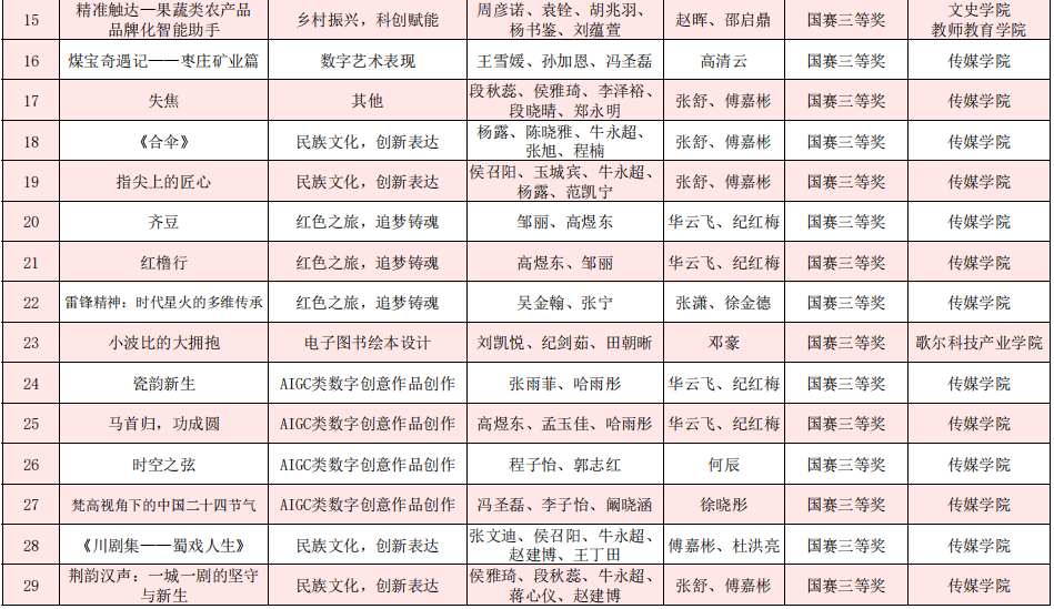 本网讯 近日,第十三届“全国大学生数字媒体科技作品及创意竞赛”全国总决赛落幕。学校传媒学院、数学与统计学院、机械与自动化学院(天瑞磁悬浮产业学院与其合署、潍柴产业学院)、文史学院(文化与旅游学院)、教师教育学院(特教幼教师范学院)、歌尔科技产业学院组建团队参赛,他们凭借扎实的专业功底与创新创意,共获国家级一等奖5项、二等奖2项、三等奖22项。