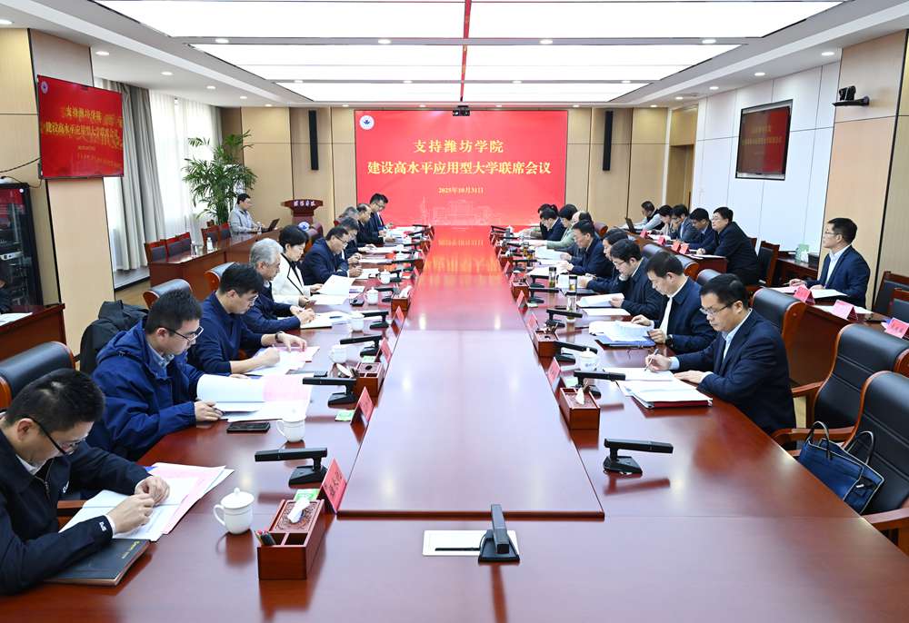 来逢波在主持会议时介绍了第二次联席会议研究事项推进落实情况。他表示,潍坊产业基础雄厚,产业集群发展态势明显,特别是现代农业、先进制造业优势突出,潍坊学院将坚定应用型办学定位,坚持“以合作求生存、以服务求发展”理念,拿出最大的诚意,贡献最优的资源,精准对接驻潍企业需求,推动校企双向奔赴、融合发展,携手为潍坊经济社会高质量发展贡献力量。