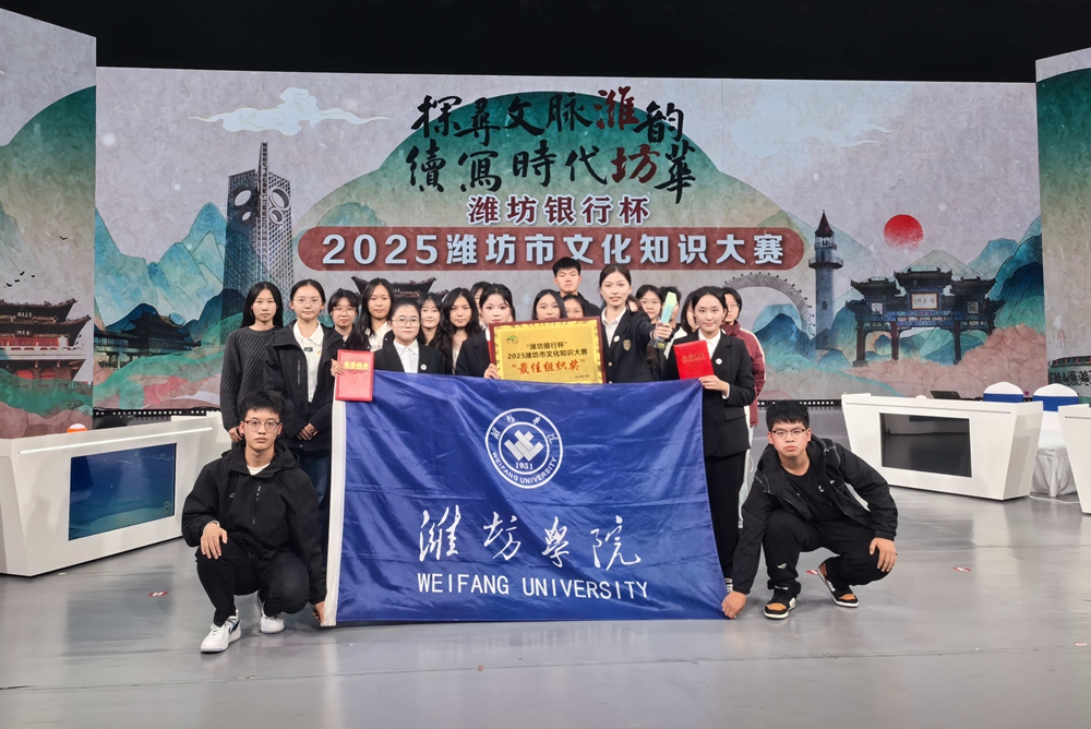 本网讯 10月31日,“2025潍坊市文化知识大赛”决赛在潍坊市融媒体中心举行,学校代表队获得二等奖(亚军),学校获评“最佳组织奖”。学校党委委员、宣传部部长张晓静出席活动。