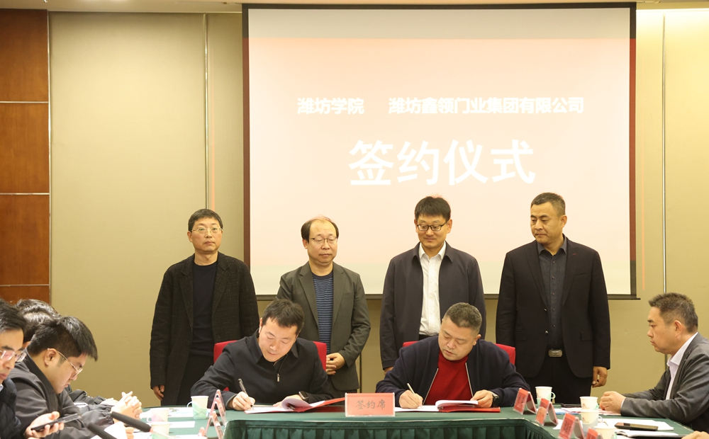 会上,学校与潍坊鑫领门业集团有限公司签订共建潍坊市工程研究中心协议; 机械与自动化学院负责同志介绍了产学研成果,与会企业结合技术需求、行业发展趋势以及今后合作方向进行了交流发言。