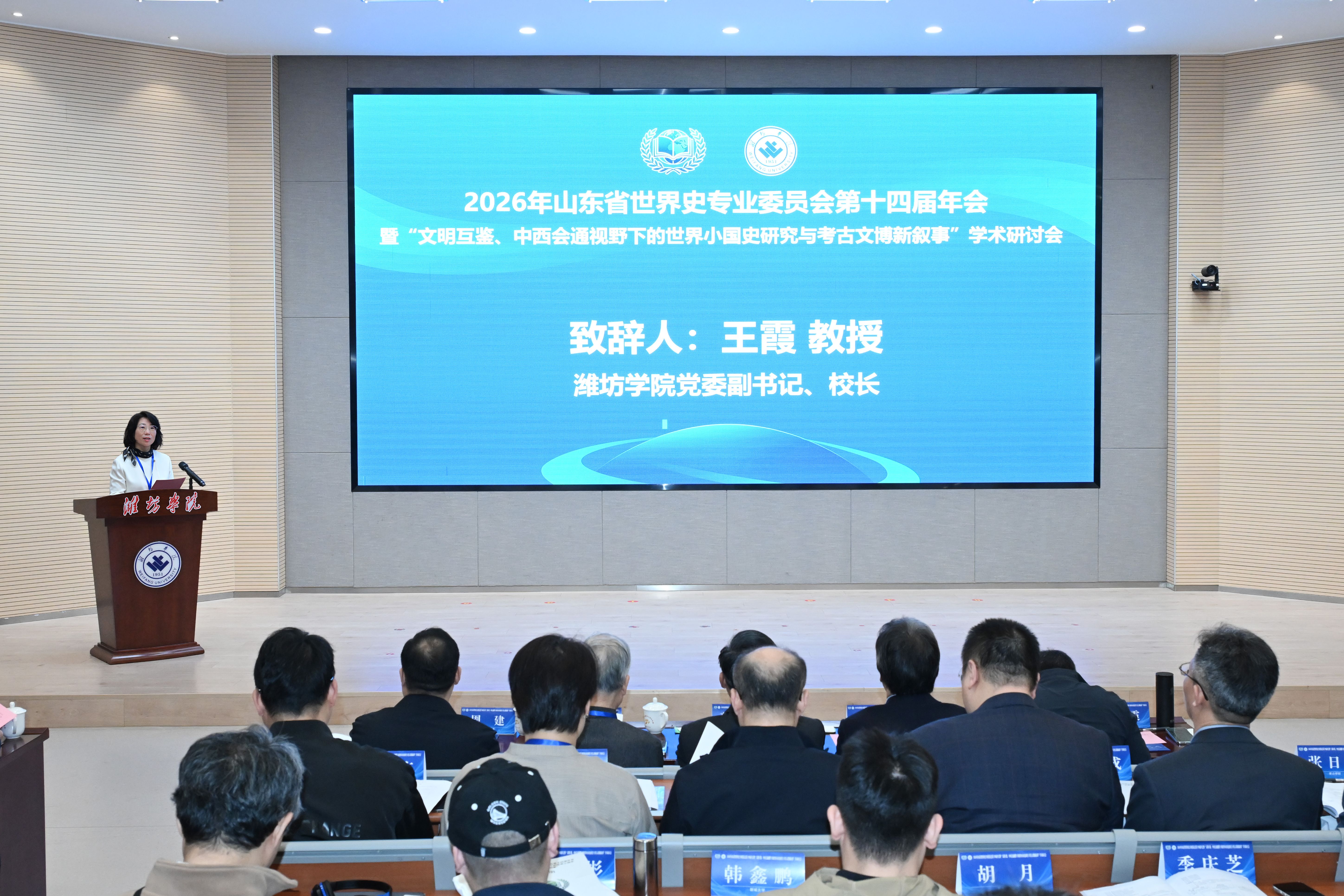 王霞对与会嘉宾表示欢迎,并简要介绍了潍坊学院的历史沿革、办学特色以及近年来在人文社会科学建设等方面取得的成果。她表示学校将以此次会议为契机,进一步深化与各高校、研究机构和出版单位的合作,共同为推进文明互鉴、丰富世界史研究贡献新的力量。