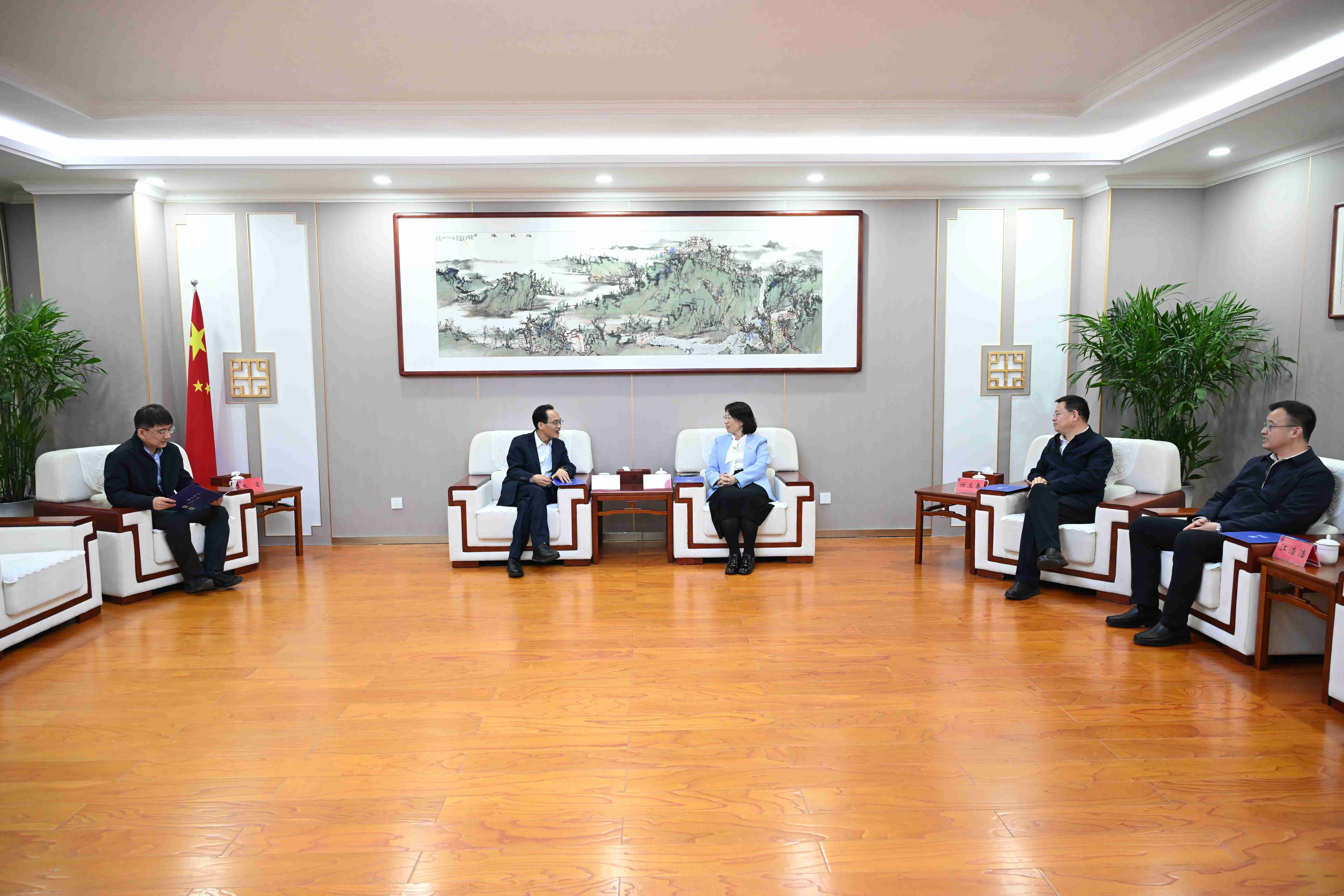 王霞代表学校对姚昌一行表示欢迎,并介绍了学校的办学特色、学科建设以及人才培养等方面的情况。她表示,两校合作基础良好,希望进一步加强沟通、互促共赢,共同推动双方事业高质量发展。