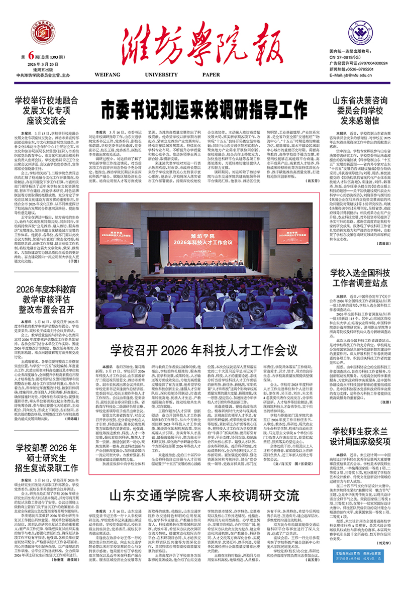 【齐鲁壹点】潍坊学院召开2026年科技人才工作会议