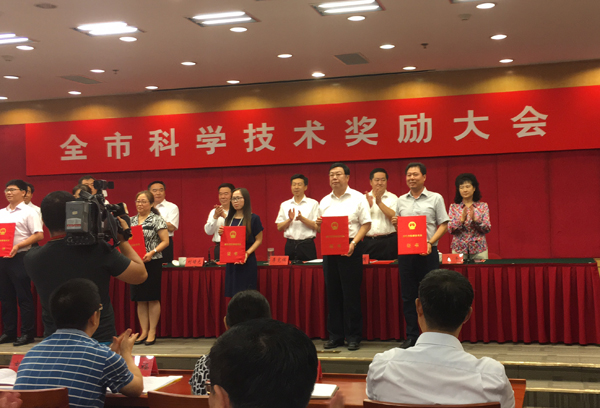 本网讯 6月30日,全市科学技术奖励大会在市级机关综合办公大楼召开。会议对2016年度获得国家和省、市科学技术奖的项目和人员进行表彰奖励,安排部署全市科技创新工作。市委书记、市人大常委会主任刘曙光出席会议,市长李宽端出席会议并讲话。我校副校长赵光强及科研处负责同志参加了会议。